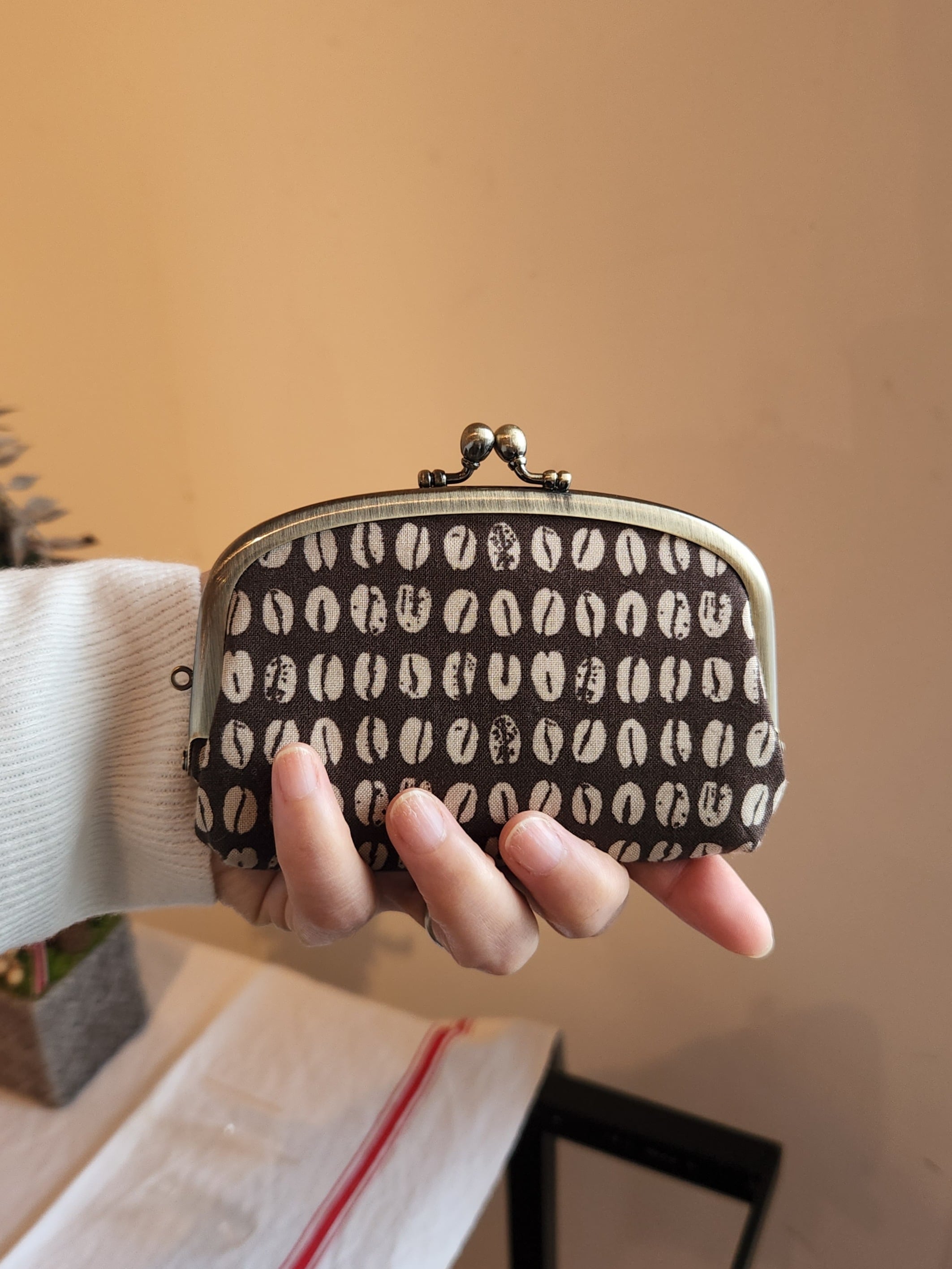 珈琲豆が並んだ柄と色味から珈琲のいい香りが漂ってきそうながま口です。