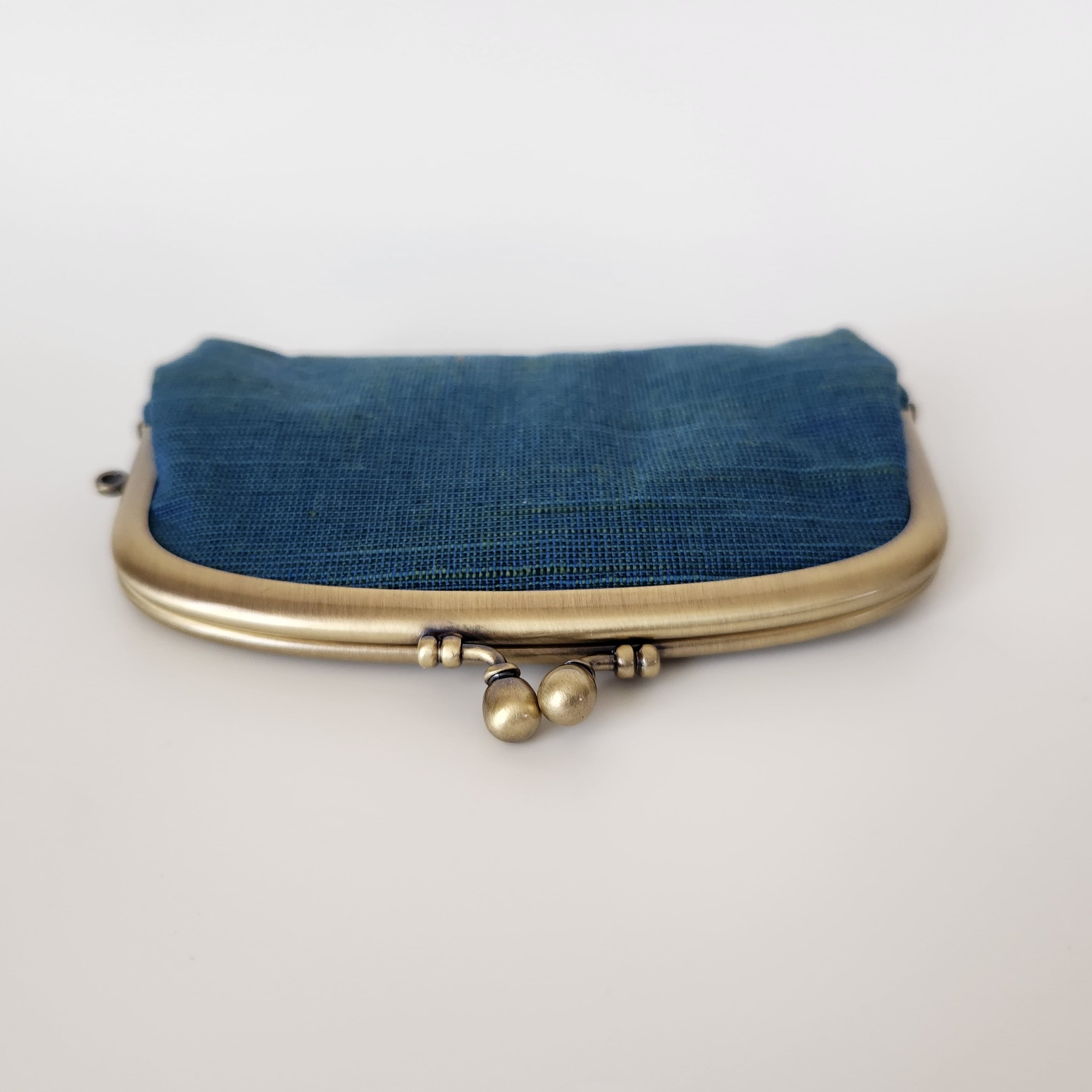 会津木綿 ターコイズブルー|コンパクトな親子がま口財布