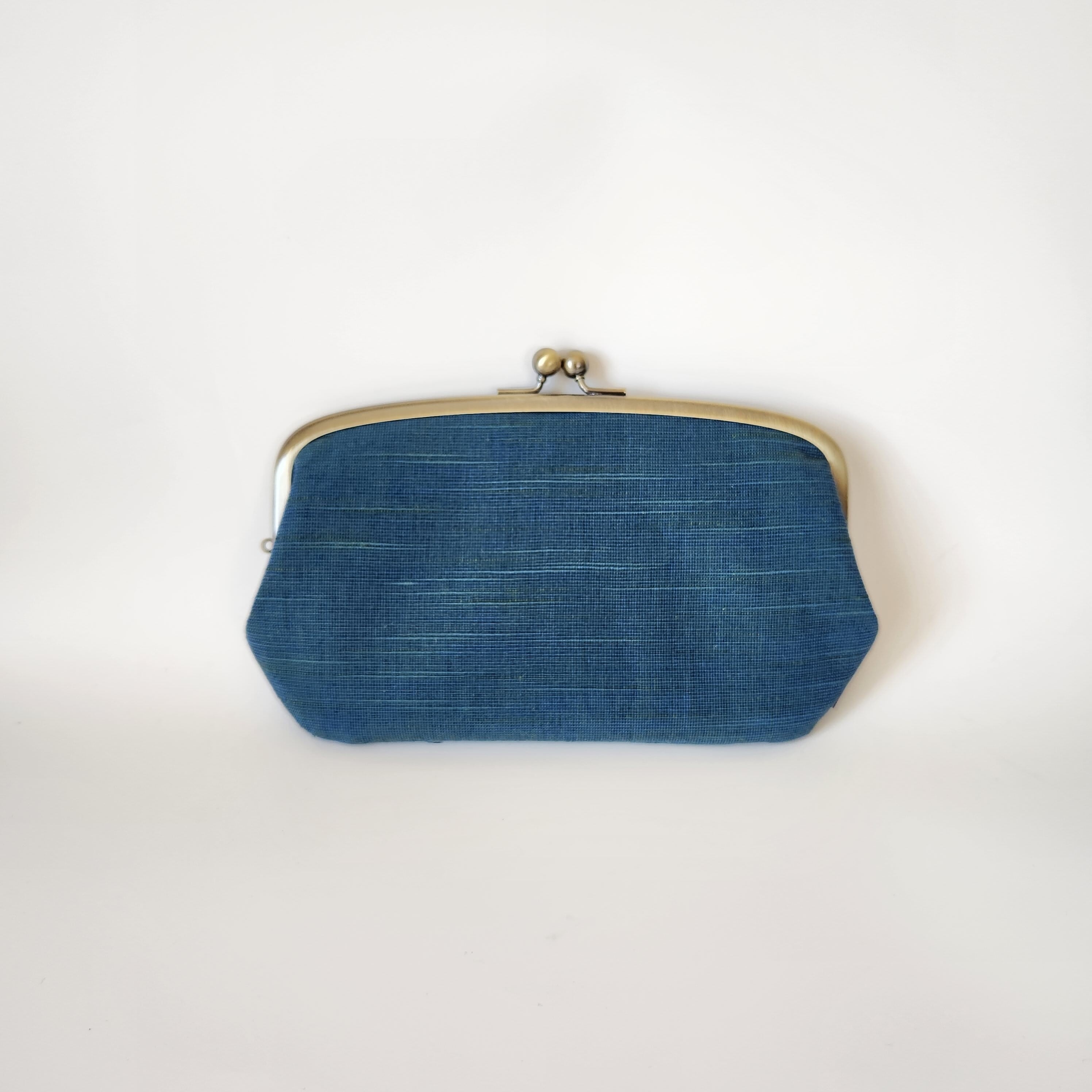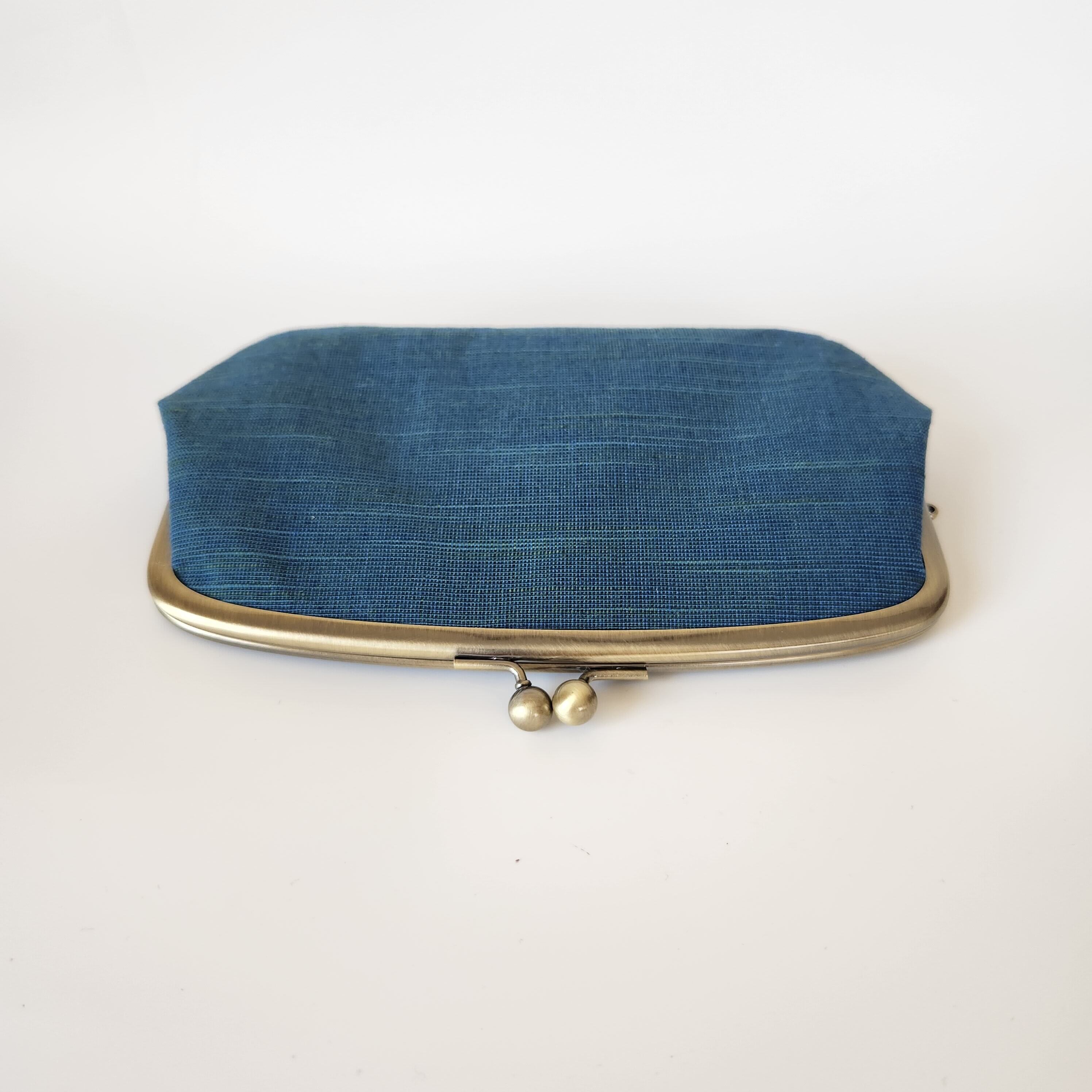 会津木綿 ターコイズ|親子がま口長財布